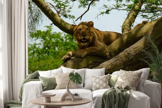 Afryka, lew, drzewa