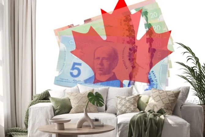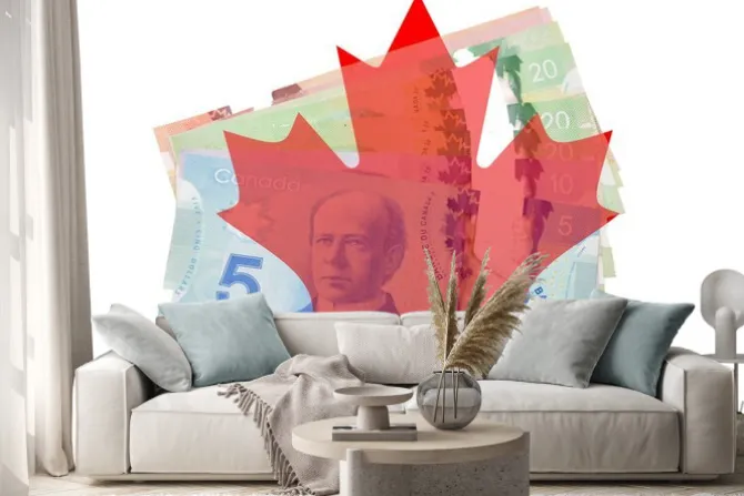 Liść klonu kanadyjskiego z dolarów na białym tle.