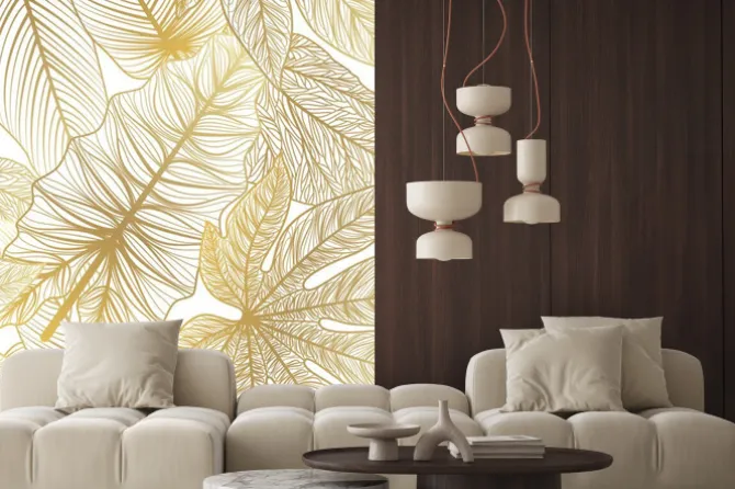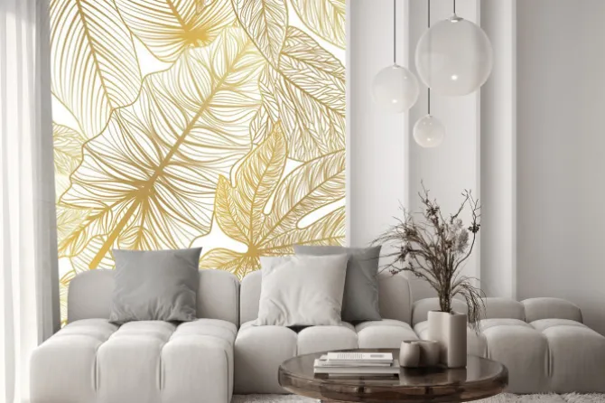 Naklejka: Liście tropikalne złotawe