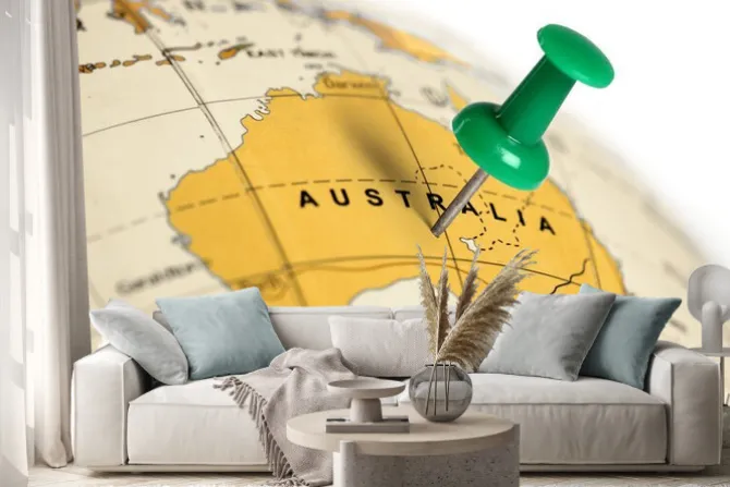 Naklejka: Location australia. green pin on the map.