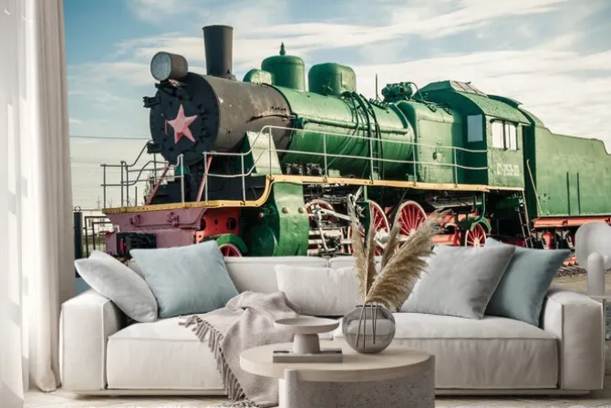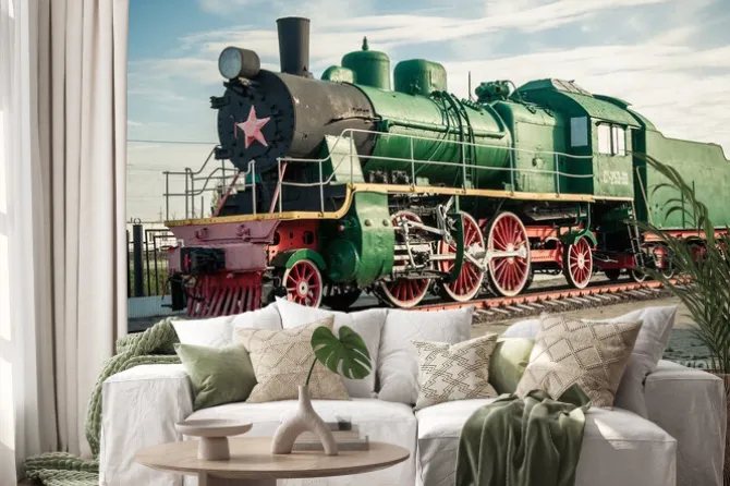 Naklejka: Lokomotywa parowa na stacji