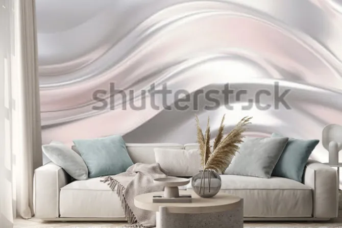 Naklejka: Luksusowe srebrne tło z satynową draperią. ilustracja 3d, renderowania