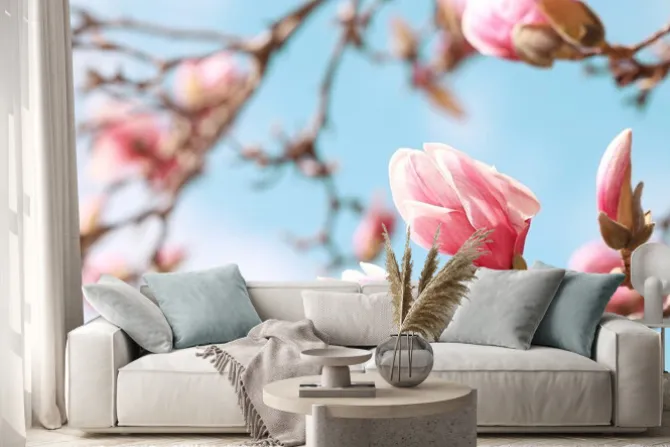 Naklejka: Magnolia kwiat drzewa na wiosnę