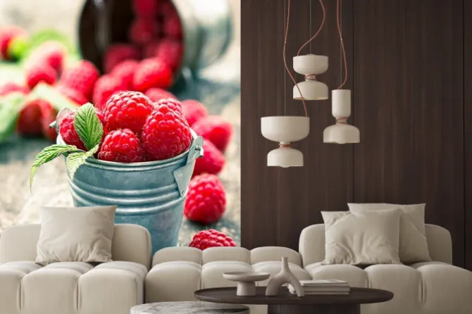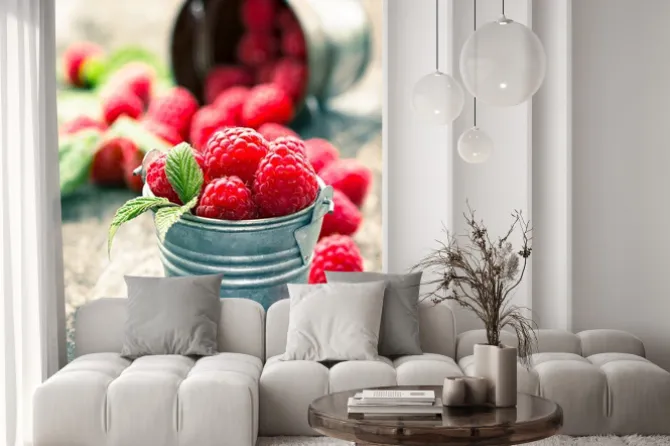 Naklejka: Maliny w małym wiaderku
