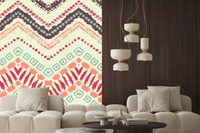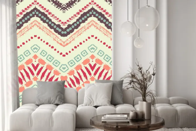 zygzak, ornament, style, retro, różowy, żółty