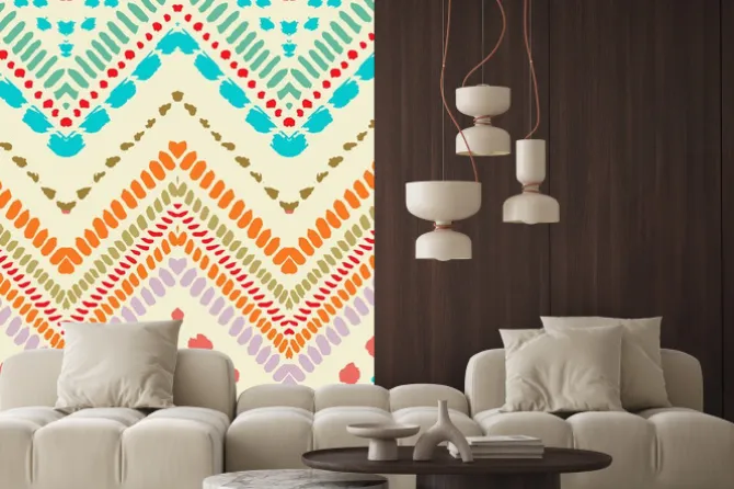 zygzak, ornament, style, retro, różowy, żółty