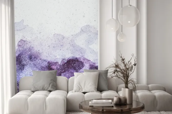 Naklejka: Malowanie przestrzeni z fioletowym farby akwarelowe na białym