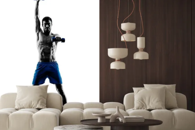 Naklejka: Man exercising fitness weights silhouette