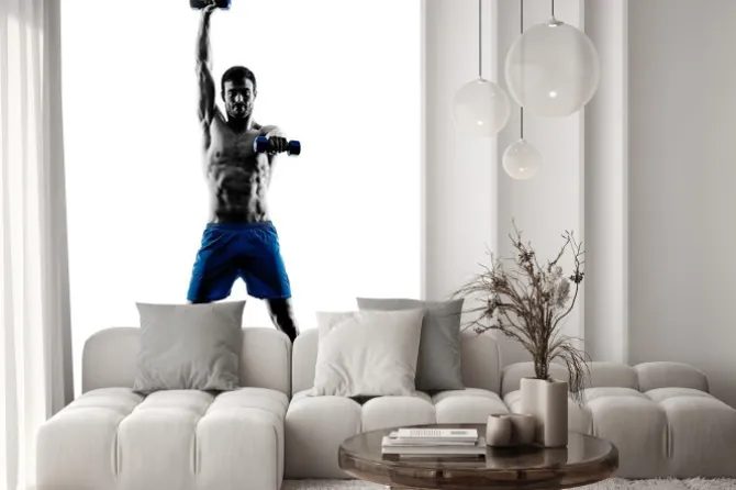 Man exercising fitness weights silhouette.