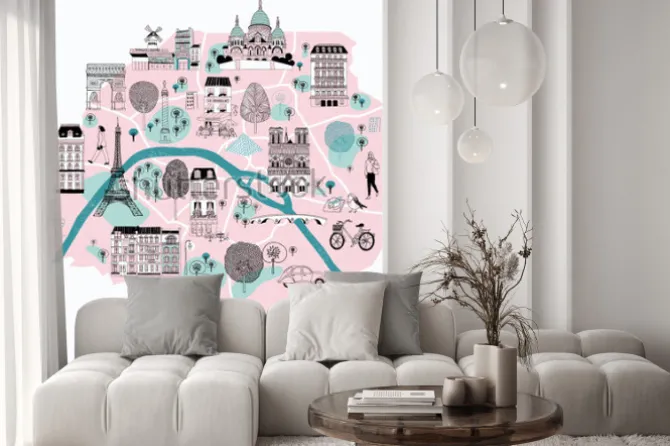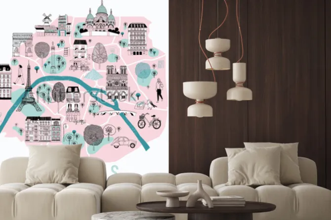 Naklejka: Mapa paryża z atrakcjami i zabytkami w stylu rysunkowym