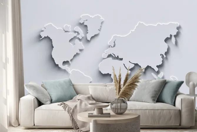 Naklejka: Mapa świata 3d w odcieniach bieli