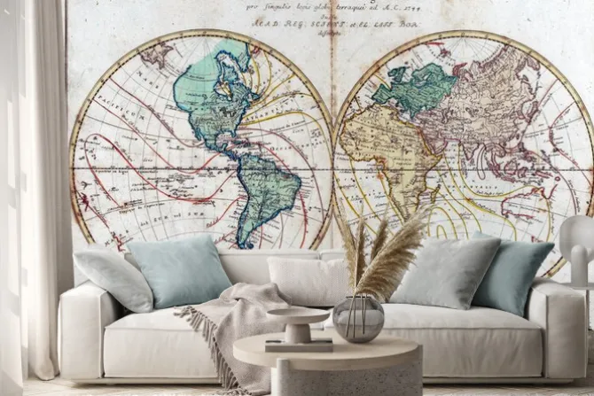Naklejka: Mapa świata dwie połowy globusa
