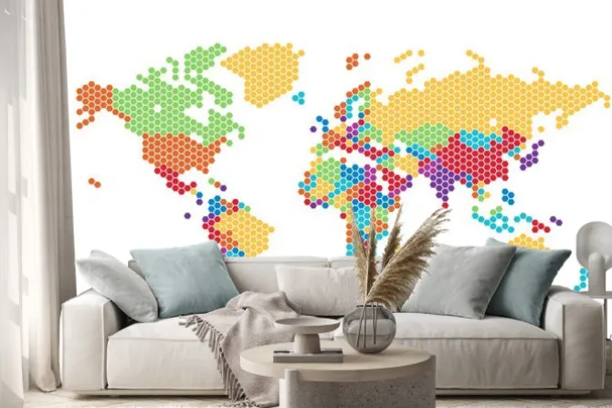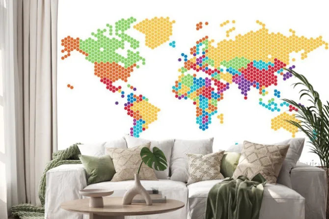 Naklejka: Mapa świata przerywana sześciokątnych kropek