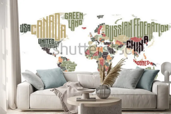 Naklejka: Mapa świata z nazwami krajów typograficznych. ilustracji wektorowych.