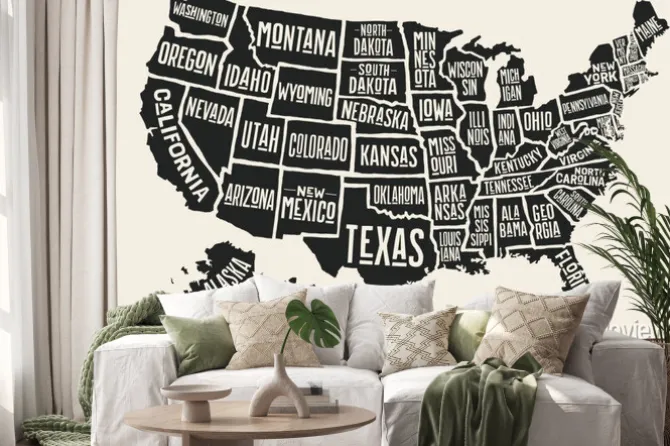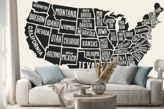 Naklejka: Mapa z podpisanymi stanami usa
