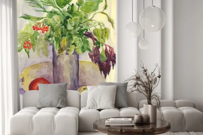 Naklejka: Martwa natura. bukiet, jabłko, cukinia, rowan. akwarela