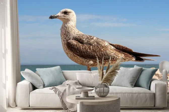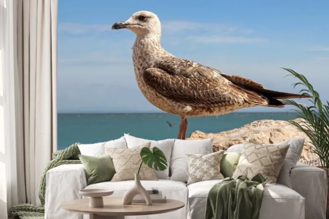 Naklejka: Mewa na klifie w cascais, portugalia