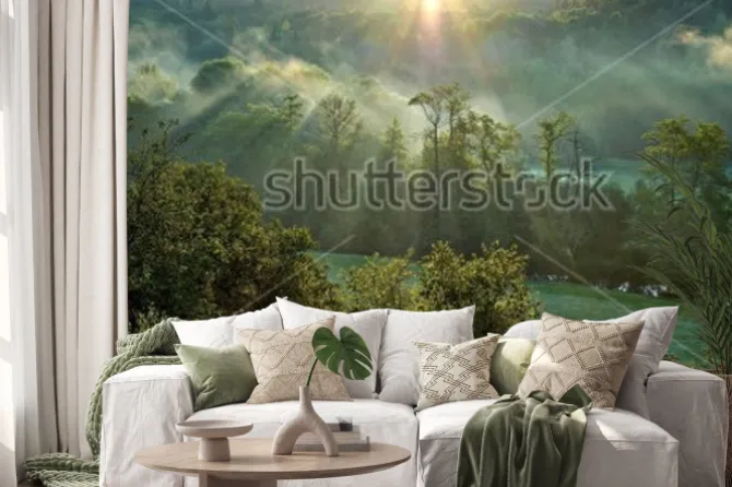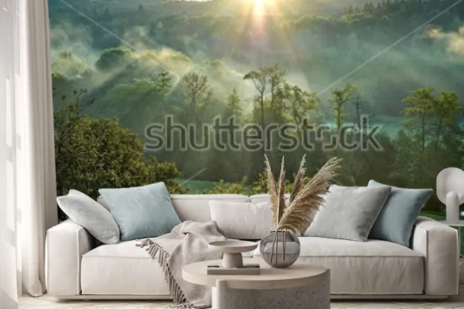 Naklejka: Mglisty poranek w lesie