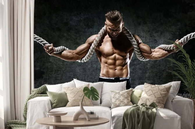 Naklejka: Mięśni człowieka z liny. zdjęcie człowieka z doskonałym ciałem