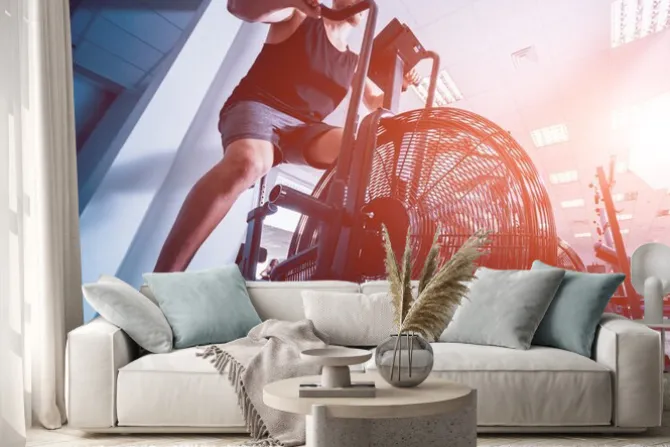 Naklejka: Młodzi mężczyźni z muskularnym ciałem za pomocą roweru powietrznego