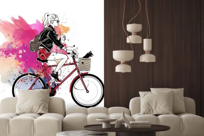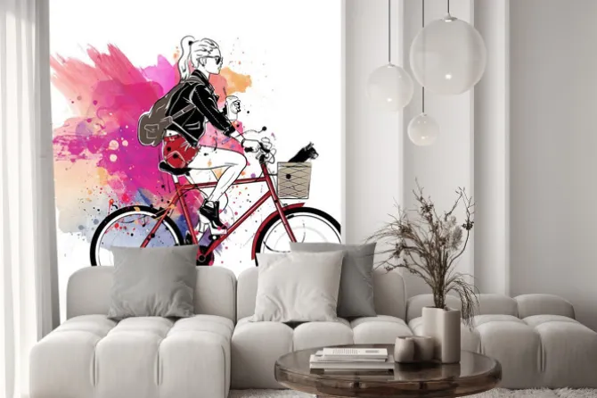 rowery, natura, ornament, biały, ludzie, kobieta, style