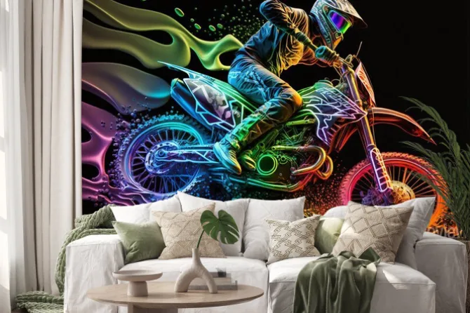 Naklejka: Motocykl motocross z neonowym podświetleniem