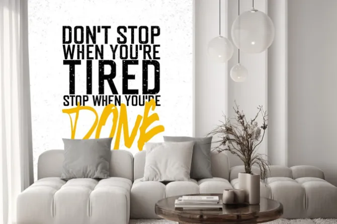 Motywacyjne plakat z napisem „Don`t zatrzyma się, gdy ty jesteś zmęczony.