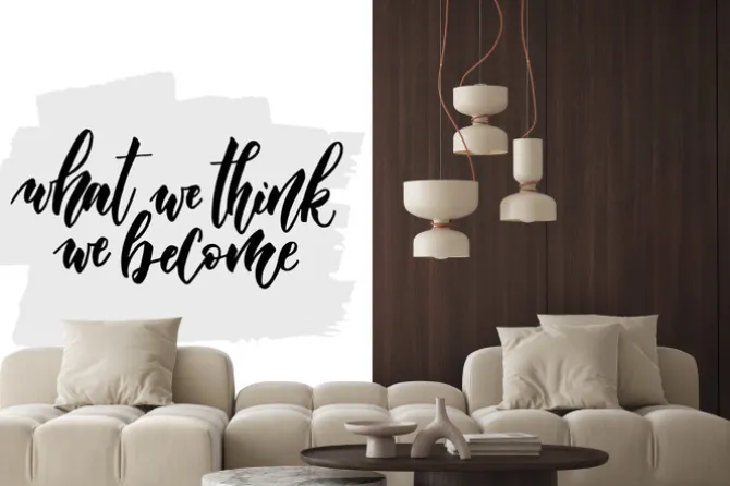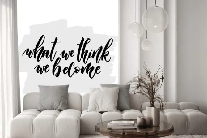 Naklejka: Motywacyjny cytat „czego myślimy, stajemy się”. wykonane pędzelkiem.