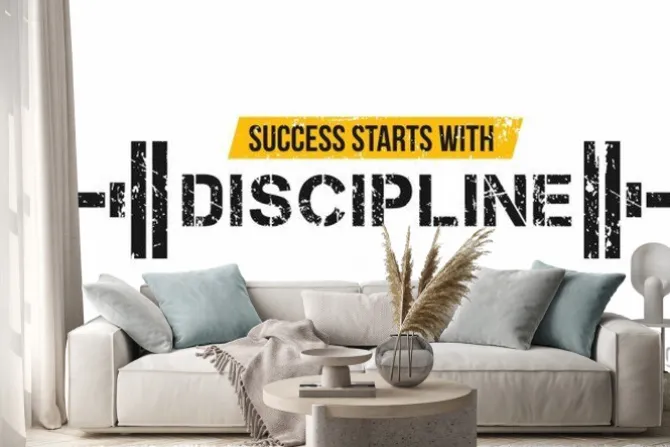 Naklejka: Motywacyjny cytat ze sztangą w tle
