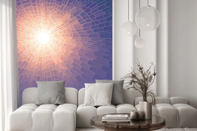 Naklejka: Mozaika ilustracji wektorowych słońca z promieniami.