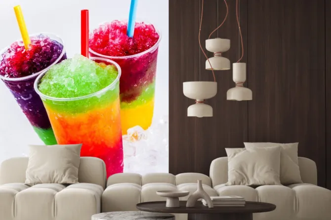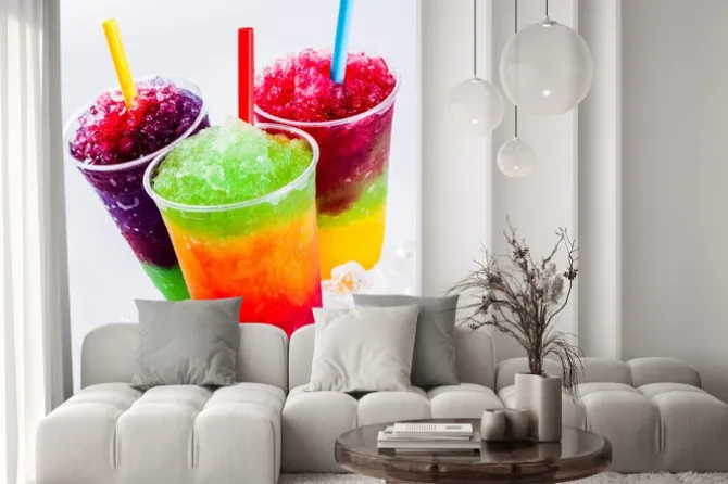 Naklejka: Mrożone rainbow slush napoje chłodzenie na lodzie