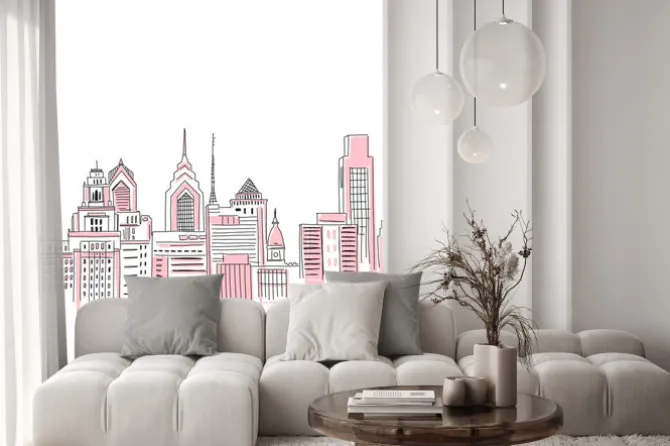 miasta, pokój dziecięcy, retro, pop art, różowy, nowy jork