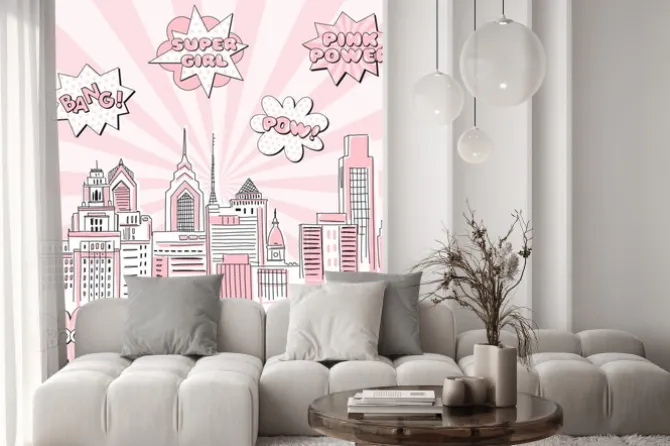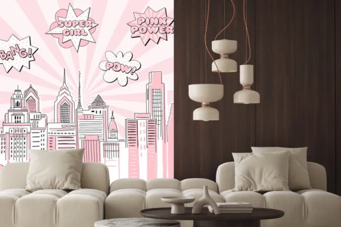 typograficzne, miasta, pokój dziecięcy, retro, pop art, różowy, nowy jork