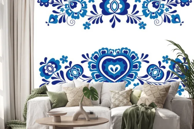 Niebieski ornament ludowy.