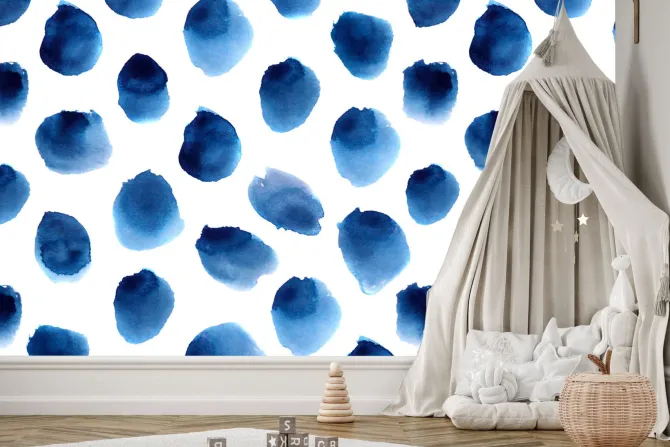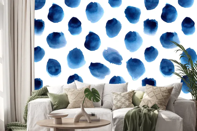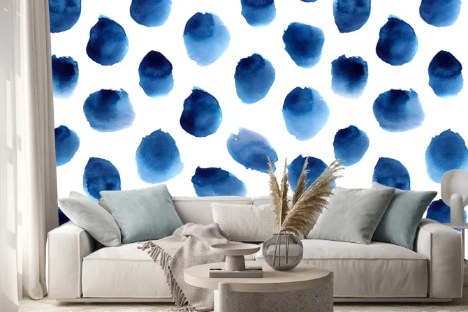 Naklejka: Niebieskie kropki na białym tle w stylu akwareli