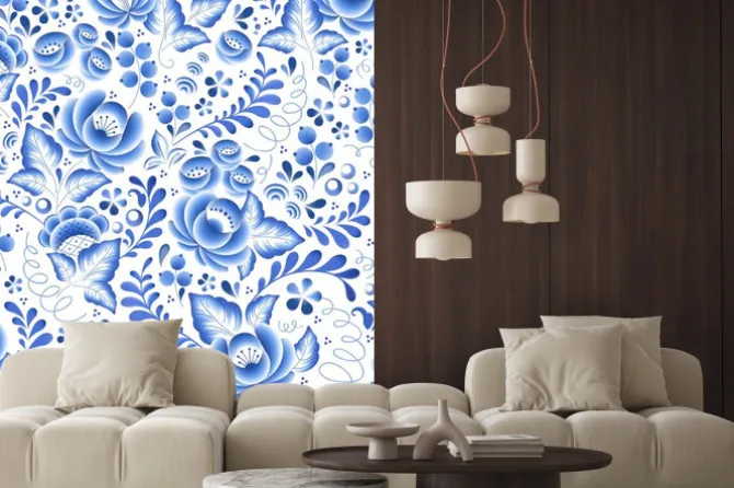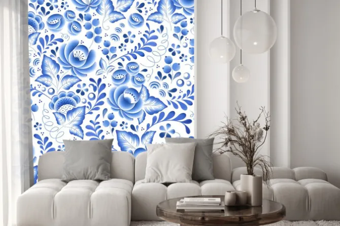 Naklejka: Niebieskie kwiaty kwiatowy ornament piękna porcelana rosyjski
