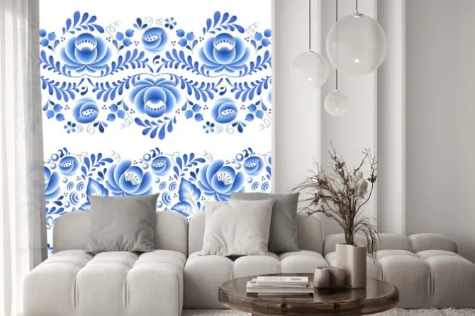 Naklejka: Niebieskie ludowe malowane kwiaty