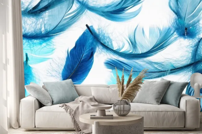 Naklejka: Niebieskie piórka na białym tle