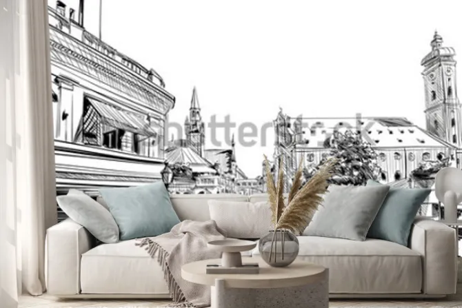Naklejka: Niemcy. monachium. ręcznie rysowane szkic, ilustracji wektorowych