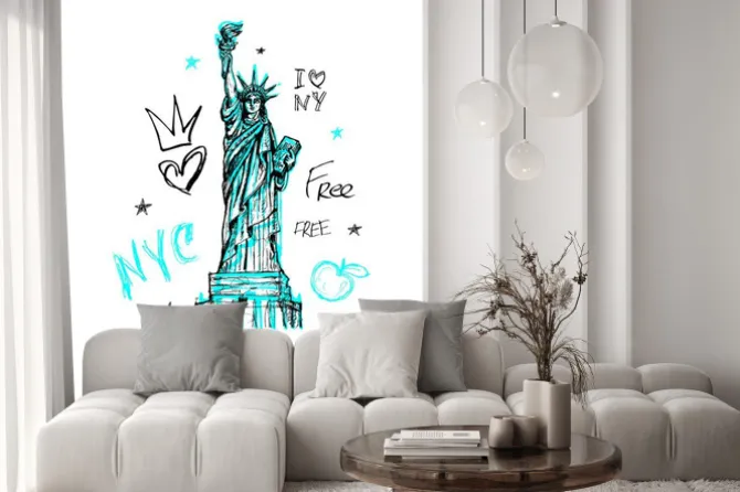 Naklejka: Nowy jork, projekt koszulki, plakat, druk, napis statua wolności,