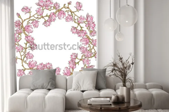 Okrągły ornament wektor z kwiatem magnolii. Vintage stylizowana ramka kwiatowy. Może być używany do kart, zaproszeń, tkanin, tapet, ozdobnych szablonów do projektowania i dekoracji itp.