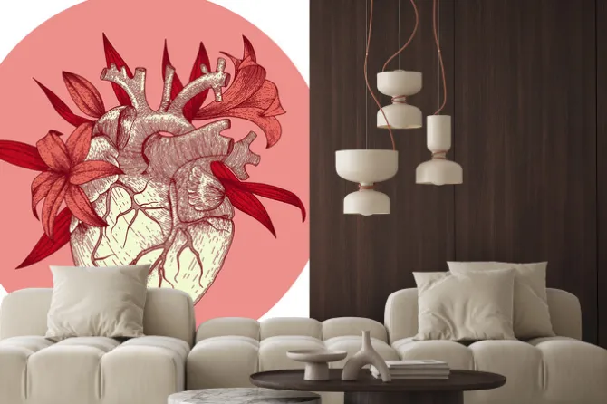 Okrągły wzór kwiatów wyrastających z serca.