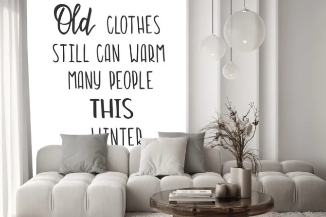 Naklejka: Old clothes still can warm many people this winter donate