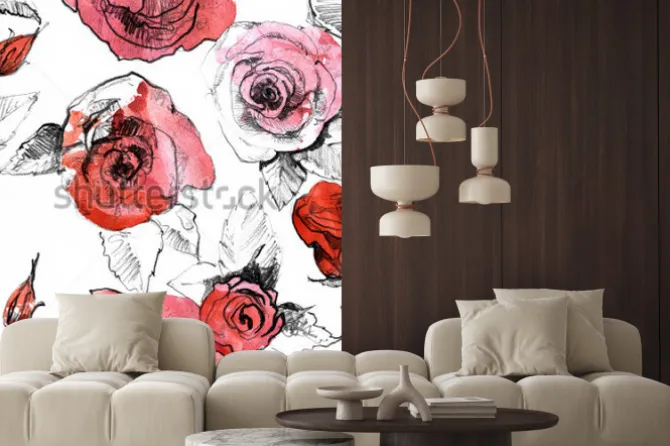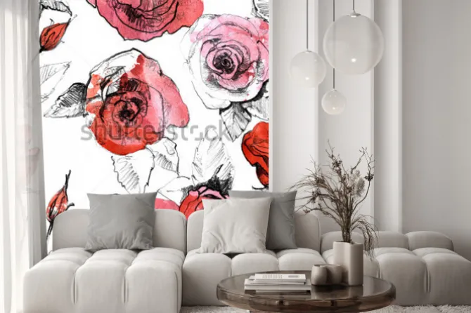 Naklejka: Ołówek, akwarela ręcznie używany realistyczny czerwony kwiat