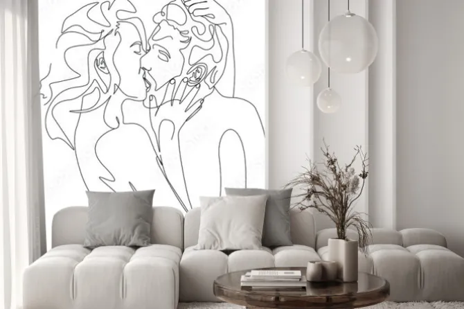 Naklejka: One line drawing minimalist couple kissing face illustration