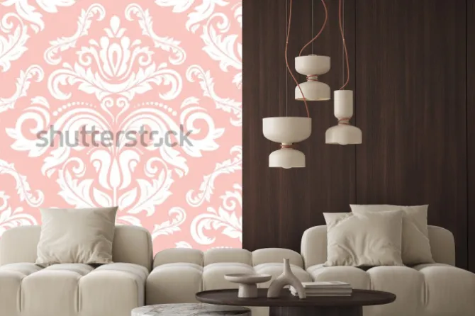 Orientalny wektor klasyczny wzór. Bezszwowy abstrakcjonistyczny tło z powtarzać elementy. Różowo-biały wzór.