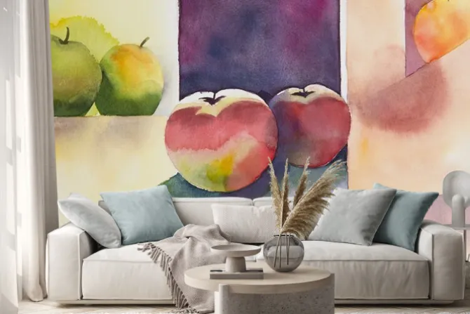 Naklejka: Original watercolor, still life, apple design.