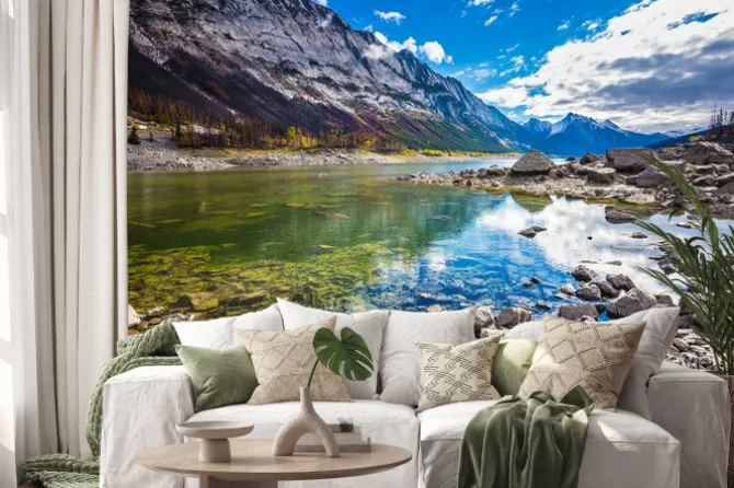 Osadzony na mieliźnie wskutek odpływu Medicine Lake w upadku.