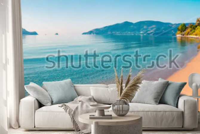 Naklejka: Oszałamiająco ranku widok plaża zakynthos (zante) wyspa. pogodny