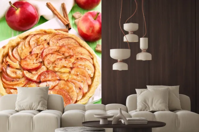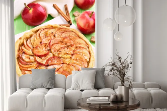 Naklejka: Owoce szarlotka na papierze do pieczenia